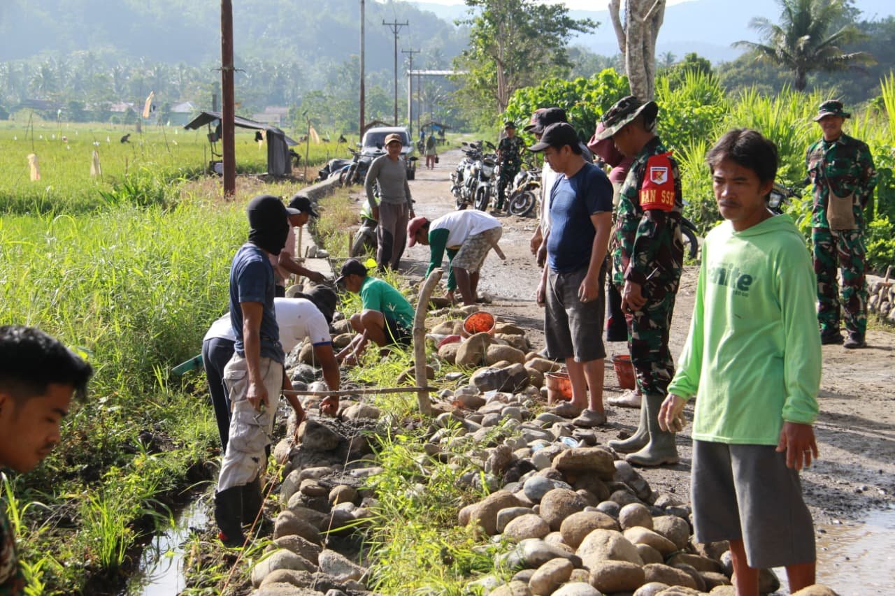 Personel Satgas TMMD, bersama masyarakat setempat, terlihat bergotong royong dalam pengerjaan, mulai dari pengangkutan material, pemerataan badan jalan, hingga pemadatan. Hal ini mencerminkan sinergi antara TNI dan masyarakat dalam upaya pembangunan desa.