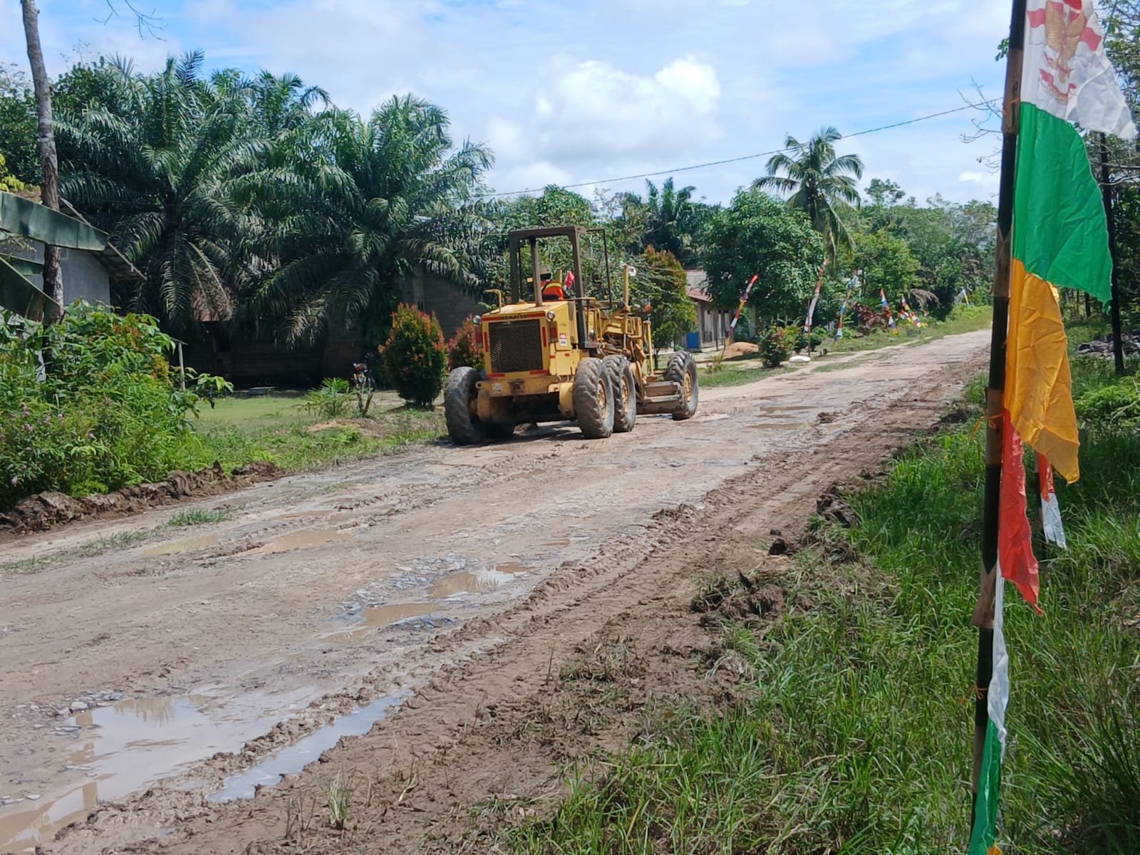 Di lokasi proyek, terlihat alat berat sedang digunakan untuk meratakan dan menyapu badan jalan yang diharapkan dapat menjadi akses penting bagi masyarakat setempat. Langkah ini merupakan bagian dari upaya percepatan pengerjaan sebelum pelaksanaan TMMD dimulai.
