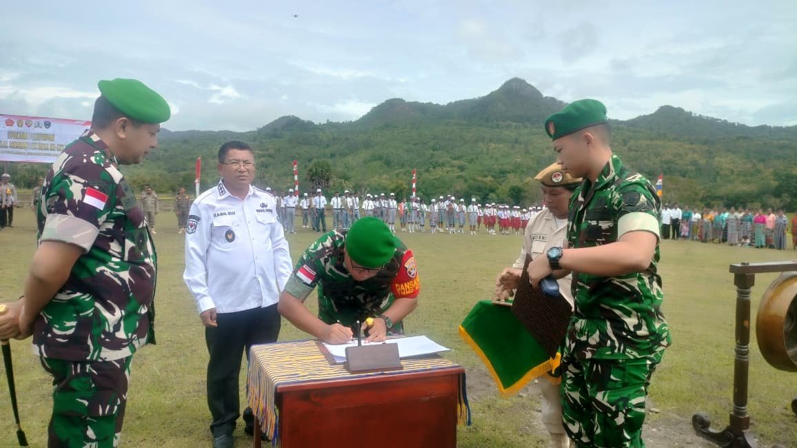Kefamenanu, NTT – Rangkaian kegiatan penutupan TMMD Ke-127 Kodim 1618/TTU di wilayah perbatasan dilaksanakan dengan penuh khidmat di Desa Sunkaen, Kecamatan Bikomi Nilulat, Kabupaten Timor Tengah Utara (TTU), pada Rabu (11/03/2026). Dalam acara tersebut, Dandim 1618/TTU Letkol Arm Didit Prasetyo Purwanto, S.E., yang juga menjabat sebagai Dansatgas TMMD, melakukan penandatanganan naskah program TMMD Ke-127. Tindakan ini menandai selesainya seluruh rangkaian kegiatan pembangunan terpadu antara TNI dan pemerintah daerah.