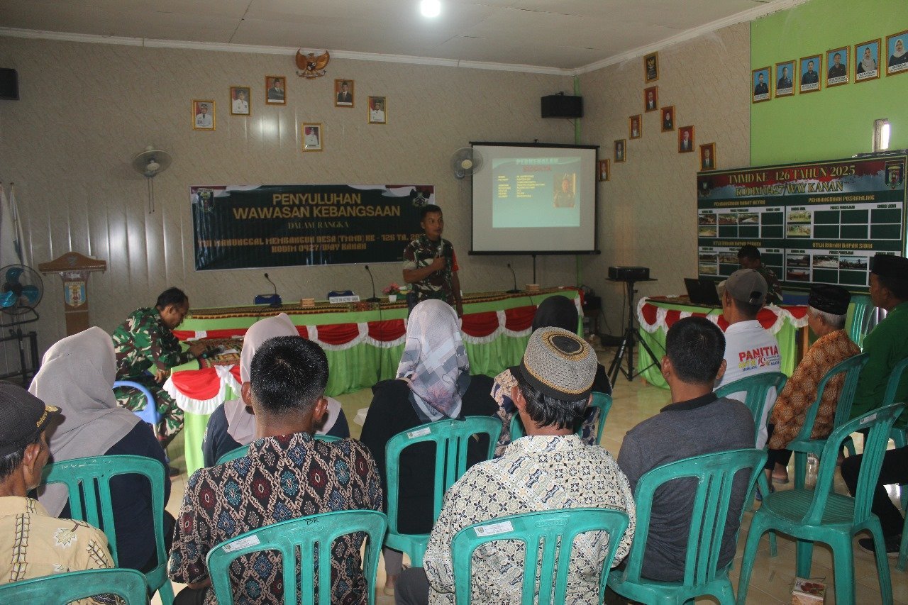 Way Kanan – Program TNI Manunggal Membangun Desa (TMMD) ke-126 Tahun 2025 Kodim 0427/Way Kanan tak hanya menyentuh aspek pembangunan fisik, tetapi juga menanamkan nilai kebangsaan melalui kegiatan penyuluhan non-fisik yang digelar di Balai Kampung Sriwijaya, Jumat (10/10/2025).