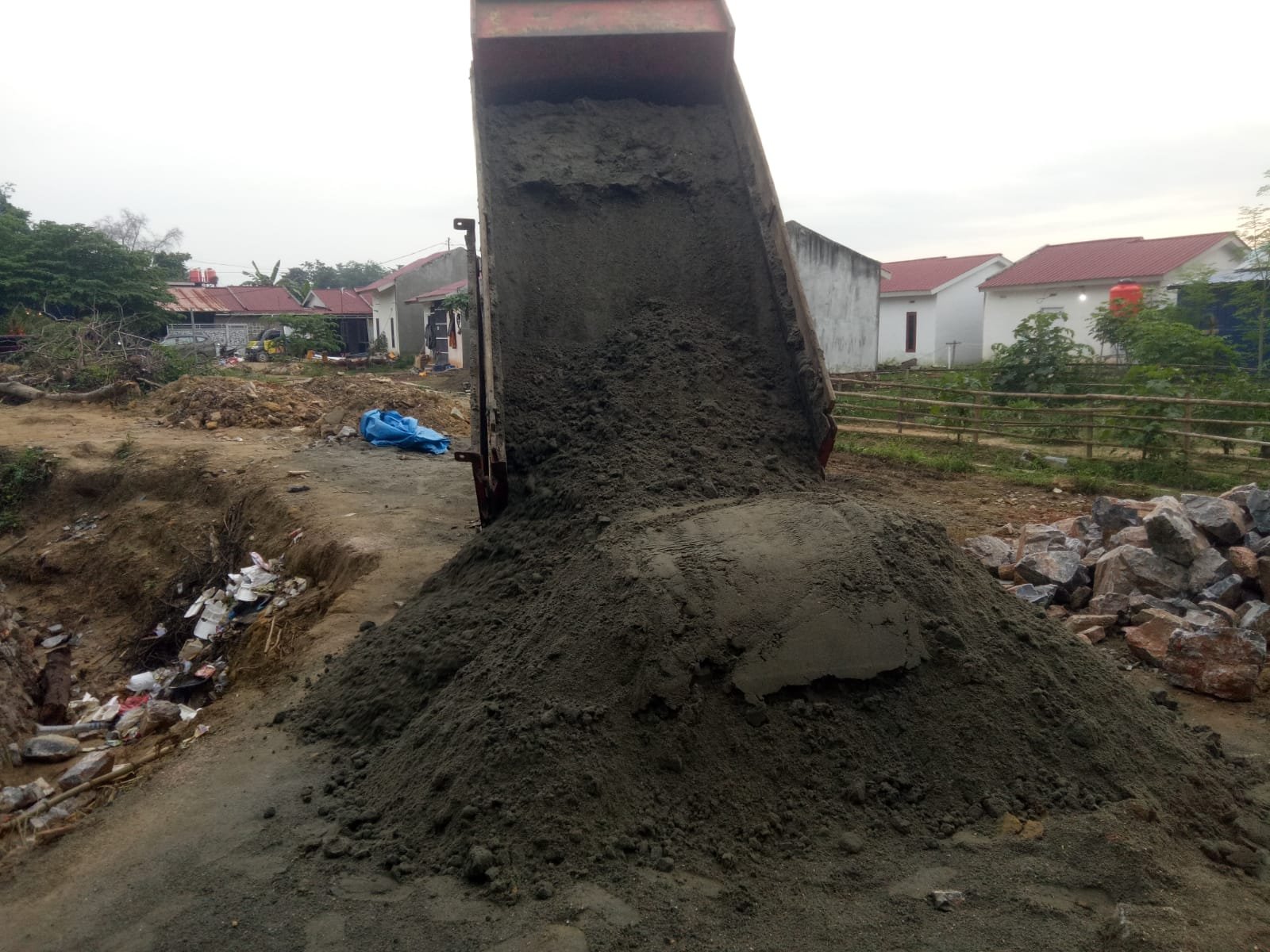 Armada truk yang membawa berbagai jenis material konstruksi terus beroperasi untuk memenuhi kebutuhan proyek pembangunan jalan dan fasilitas umum.