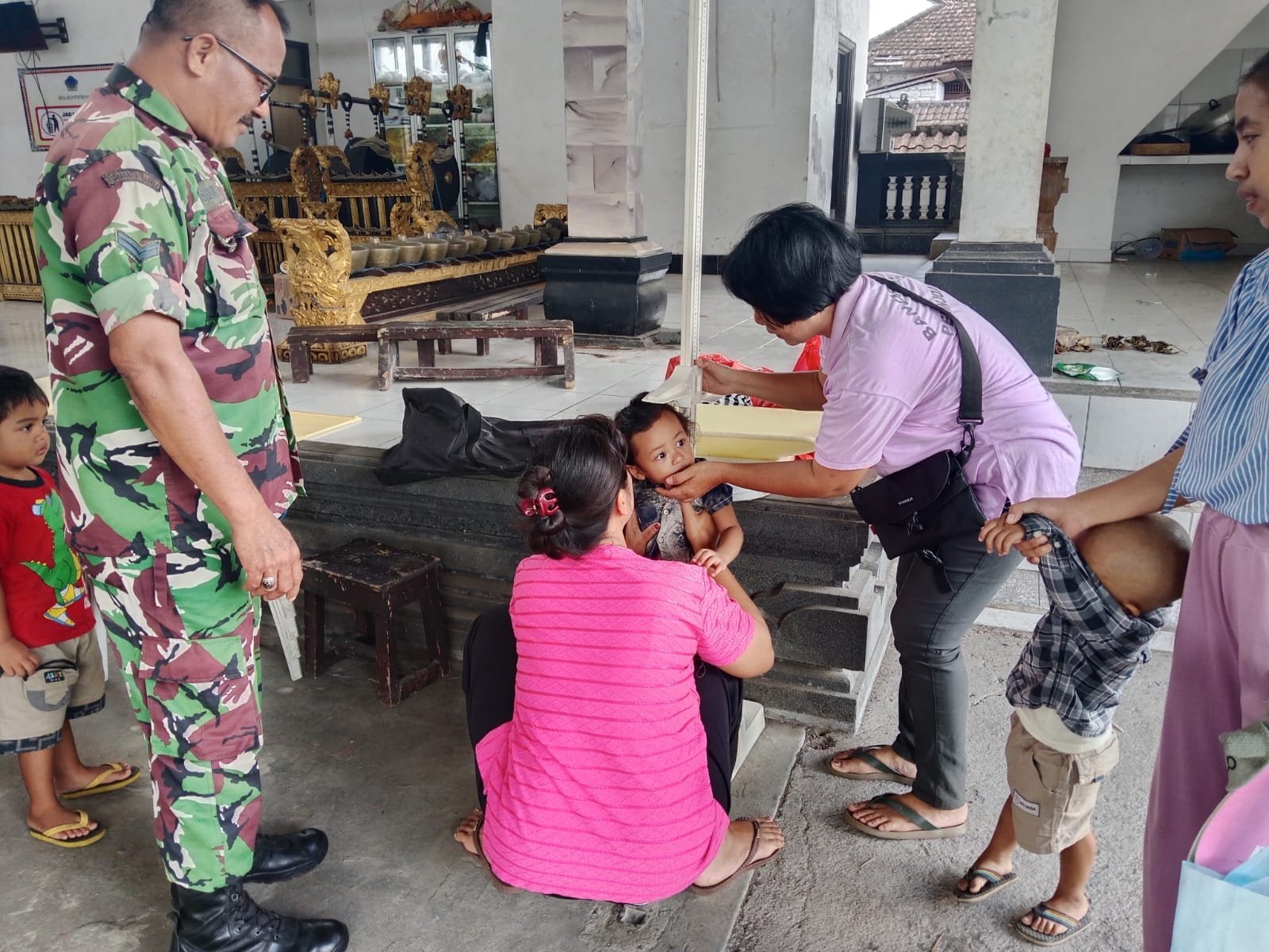 Bangli – Dalam rangka mendukung program pemerintah di bidang kesehatan masyarakat, Babinsa Desa Peninjoan Koramil 1626-03/Tembuku, Serka I Made Suarnika, turut mendampingi kegiatan Posyandu Balita yang dilaksanakan di Banjar Kebon Kaja, Desa Persiapan Pulesari, Kecamatan Tembuku, Kabupaten Bangli, Kamis (6/11/2025).