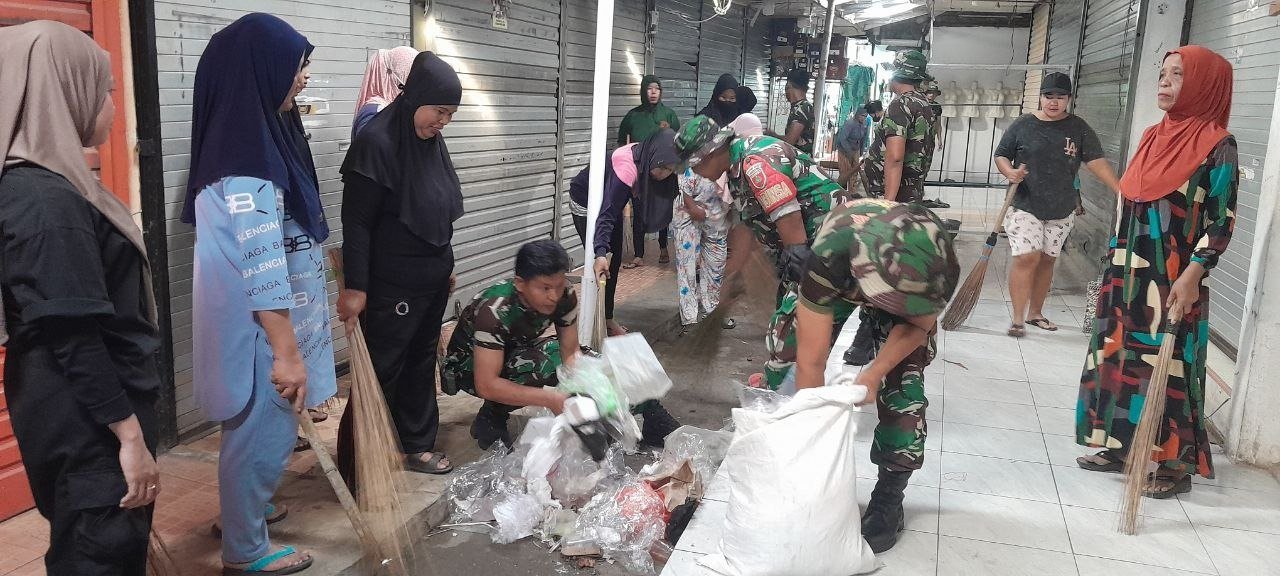Perkuat Sinergi TNI dan Rakyat, Koramil 1420-03/Maritengngae Gelar Karya Bakti Pembersihan Pasar Sentral Pangkajene