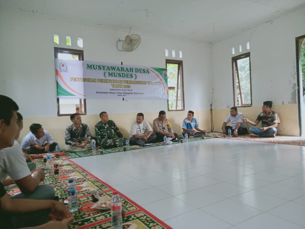 Kegiatan yang dihadiri oleh berbagai elemen masyarakat ini bertujuan untuk menyusun rencana pembangunan di tingkat desa yang lebih efektif dan sesuai dengan kebutuhan masyarakat setempat. Kapten Inf Junaidi Danramil 11/Woyla Timur dalam kesempatan tersebut menyampaikan pentingnya kerjasama antara semua pihak dalam mewujudkan keamanan dan kesejahteraan masyarakat.