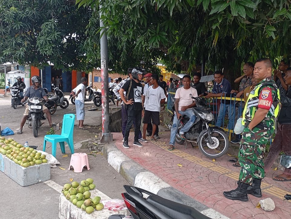 NTT-SIKKA,- Babinsa Korami 1603-01/Alok Kodim 1603/Sikka Praka Aris Wijayanta melaksanakan Komunikasi Sosial (Komsos) bersama para tokoh pemuda di pinggiran jalan Kelurahan Kabor, Kecamatan Alok, Kabupaten Sikka, Jumat 17/01/25.