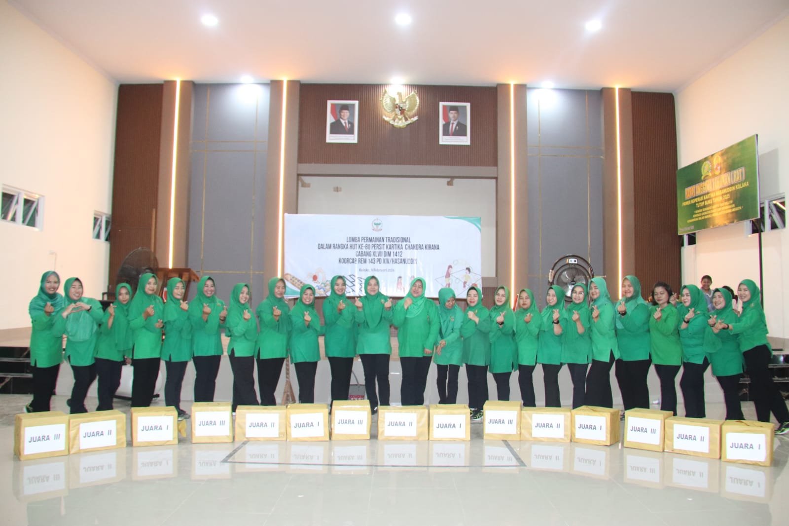 Kolaka – Dalam rangka merayakan Hari Ulang Tahun (HUT) ke-80 Persit Kartika Chandra Kirana (KCK), Ketua Persit KCK Cabang XLVII Dim 1412/Kolaka, Ny. Novita Choky Gunawan, mengadakan serangkaian perlombaan yang melibatkan anggota dan anak-anak Kodim 1412/Kolaka. Kegiatan ini diselenggarakan di Makodim 1412/Kolaka pada hari Senin, 9 Februari 2026, dengan semangat kebersamaan yang tinggi. Tujuan dari acara ini adalah untuk memperkuat tali silaturahmi di antara anggota Persit serta menumbuhkan rasa kebersamaan dalam keluarga besar Kodim 1412/Kolaka. Berbagai jenis lomba tradisional dipertandingkan dalam acara ini, antara lain Lomba Karet, Lomba Congklak, Lomba Gobak Sodor/Galaksin, Lomba Bentengan, dan Lomba Bola Bekel. Seluruh peserta menunjukkan antusiasme yang tinggi saat mengikuti perlombaan yang penuh nuansa tradisional ini. Selain sebagai hiburan, kegiatan ini juga berkontribusi terhadap pelestarian permainan rakyat serta penanaman nilai-nilai sportivitas dan kerja sama di kalangan anak-anak. Dalam kesempatan itu, Ny. Novita Choky Gunawan mengungkapkan bahwa acara ini merupakan ungkapan rasa syukur atas perjalanan 80 tahun Persit KCK, serta menjadi sarana untuk mempererat persaudaraan di antara anggota Persit dan keluarga besar TNI AD. “Kami berharap melalui kegiatan ini, rasa kekompakan, kebersamaan, dan semangat kekeluargaan dapat tumbuh di antara anggota Persit dan keluarga besar Kodim 1412/Kolaka,” tuturnya. Kegiatan ini berlangsung dengan aman, tertib, dan penuh keceriaan, diakhiri dengan pemberian penghargaan kepada pemenang lomba.