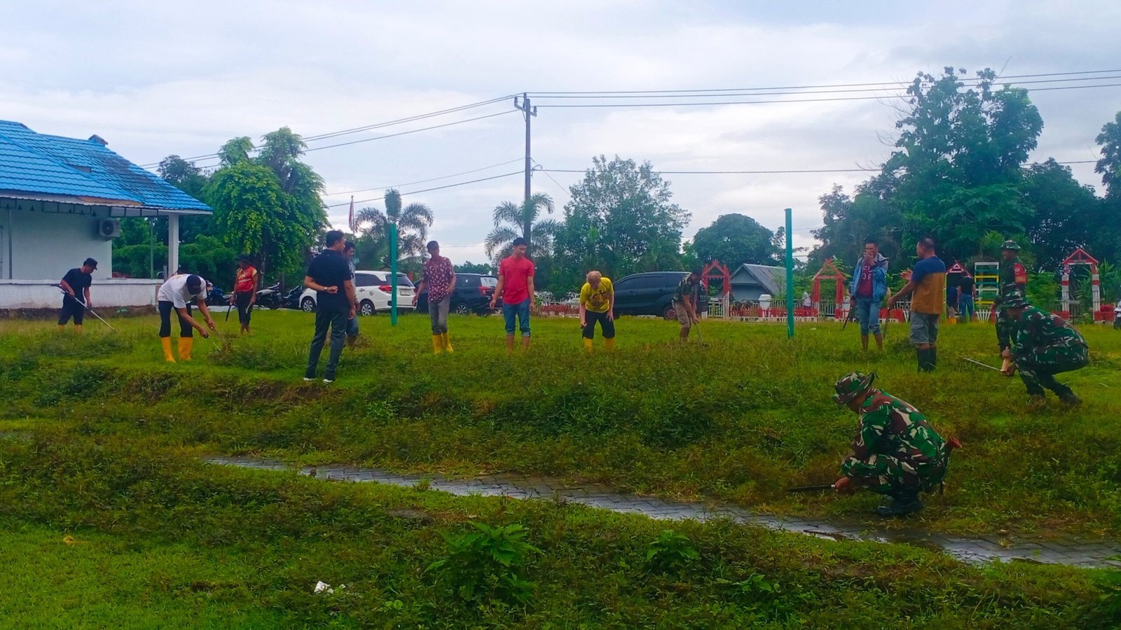 Personel Koramil 1426-01/Polut Bersama Warga Gotong Royong Bersihkan Lapangan