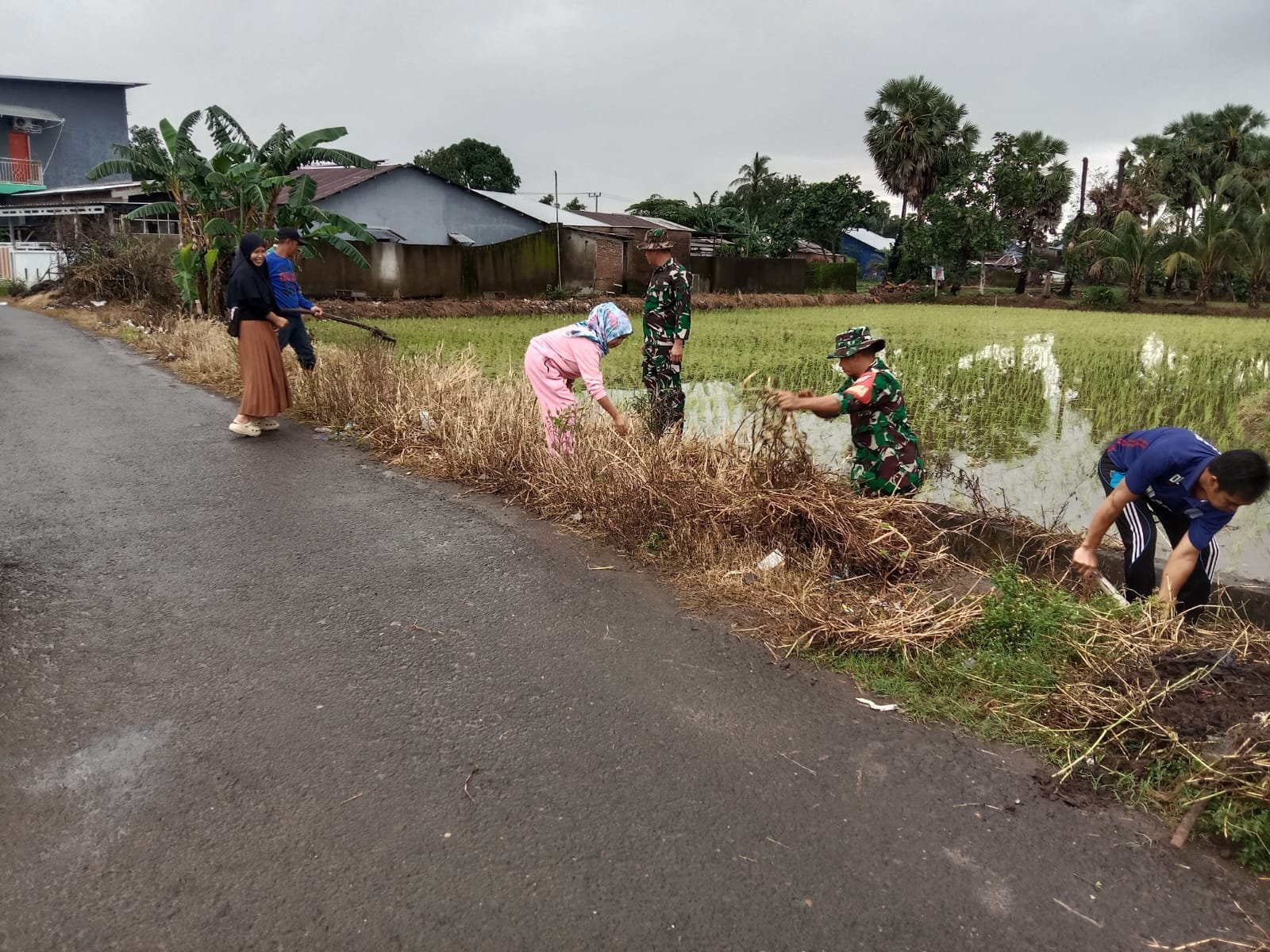 Personel Koramil 1426-03/Galut Bersama Warga Gotong Royong Bersihkan Saluran Irigasi