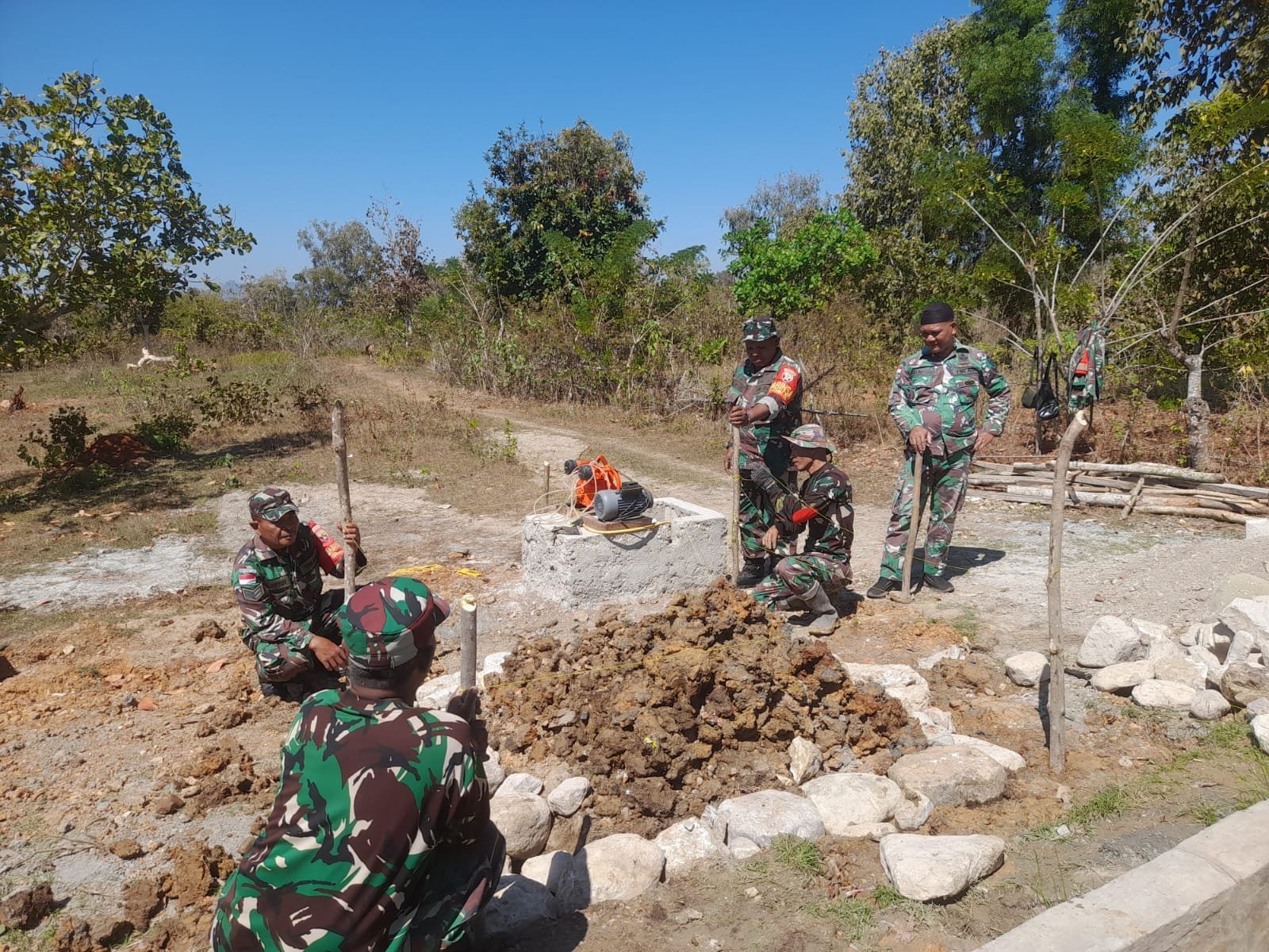 “Pembuatan dudukan viber ini sangat penting agar proses pengeboran bisa berjalan lancar dan aman. Kami pastikan semua persiapan teknis dilakukan secara teliti,” ujar salah satu anggota Satgas TMMD di lokasi.
