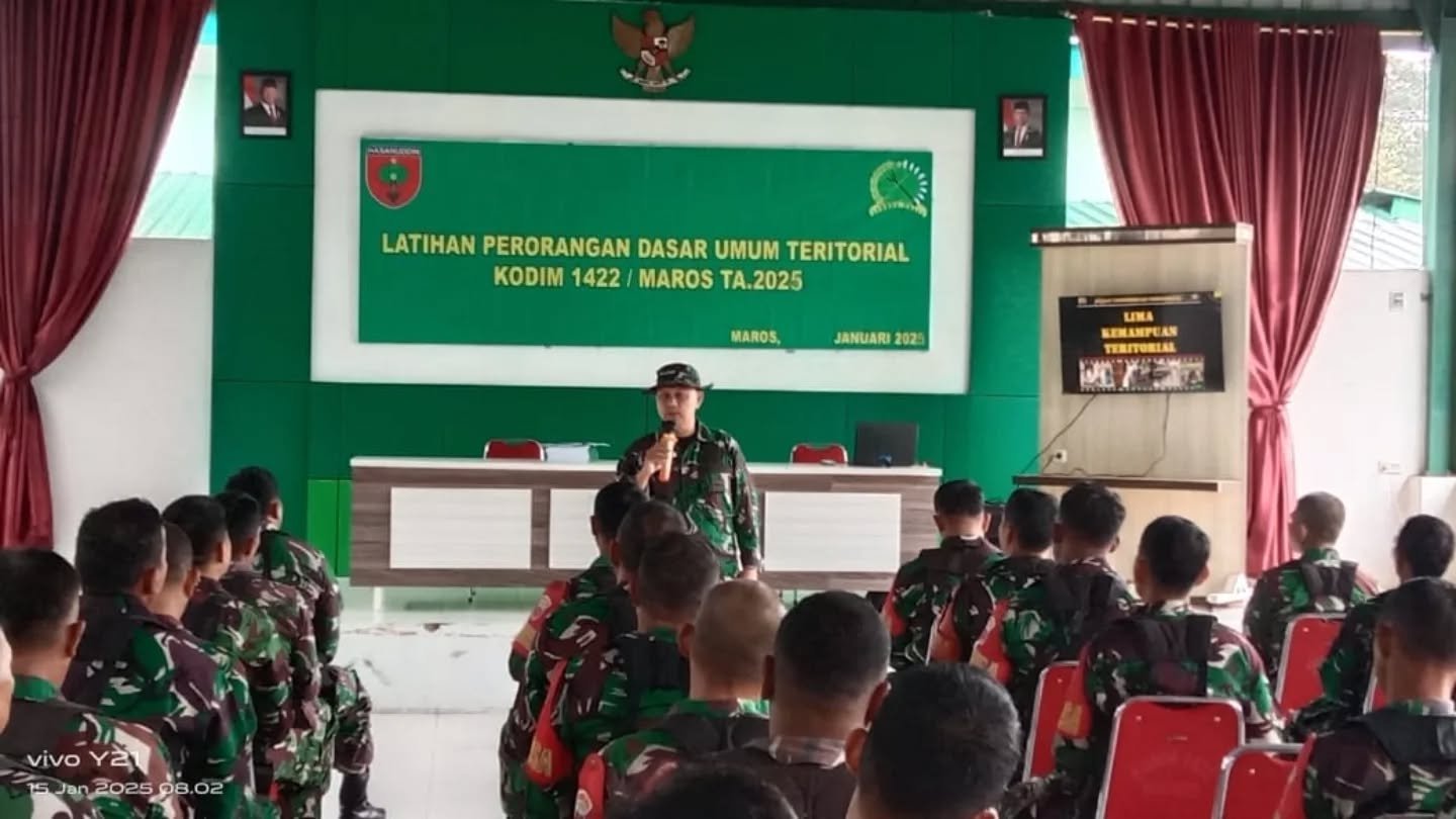 Maros – Dalam rangka meningkatkan kemampuan dan kesiapan personil, Kodim 1422/Maros melaksanakan Latihan Perorangan Dasar Umum Teritorial Tahun Anggaran 2025. Latihan ini berlangsung di Aula Makodim 1422/Maros, Jalan DR. Ratulangi, Kecamatan Turikale, Kabupaten Maros, pada Rabu (15/01/2025).