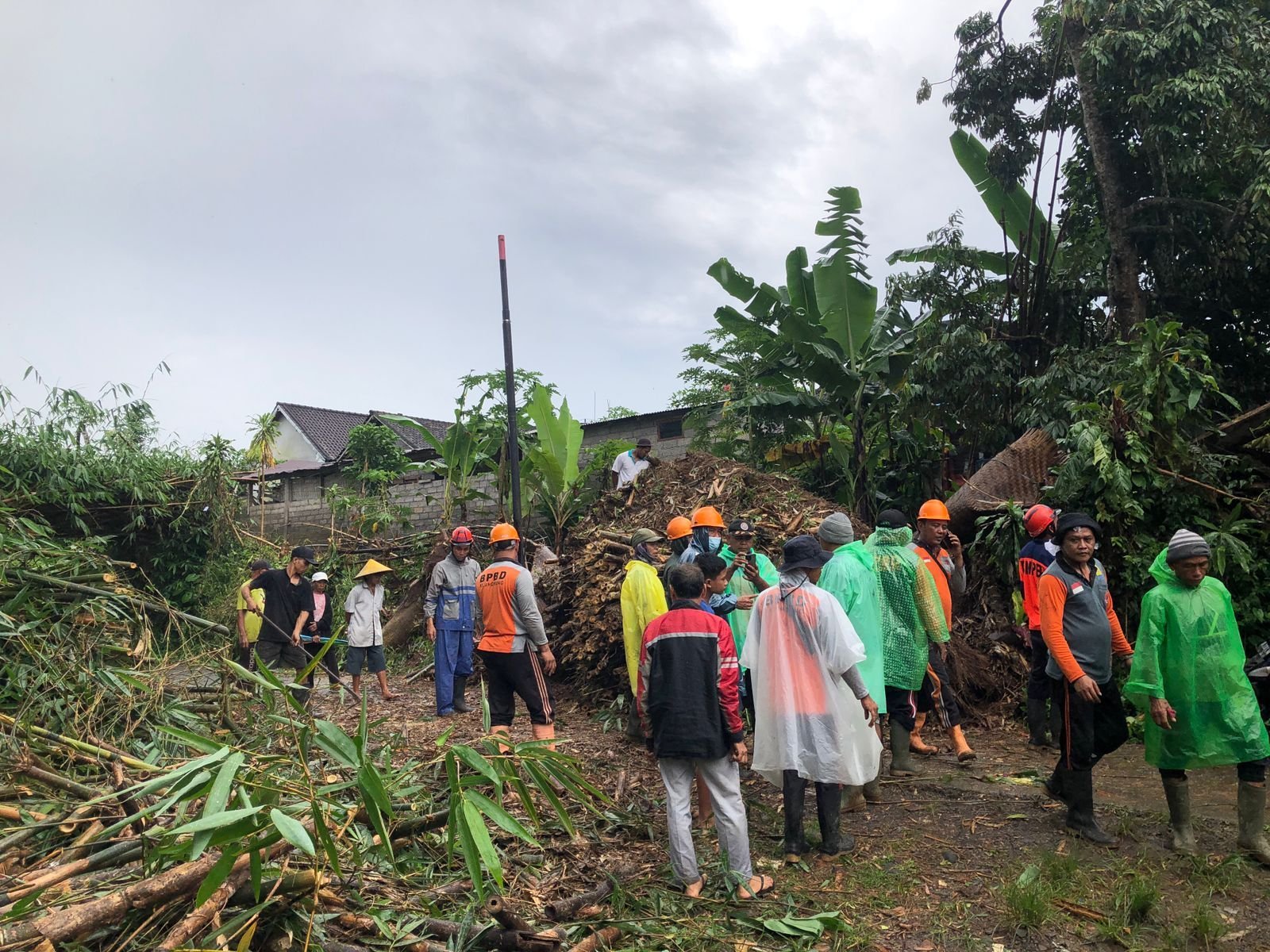 Dengan dibantu warga sekitar, kita bergotong royong untuk membersihkan dan mengevakuasi tumbangnya pohon bambu yang menutup badan jalan,’lanjutnya.