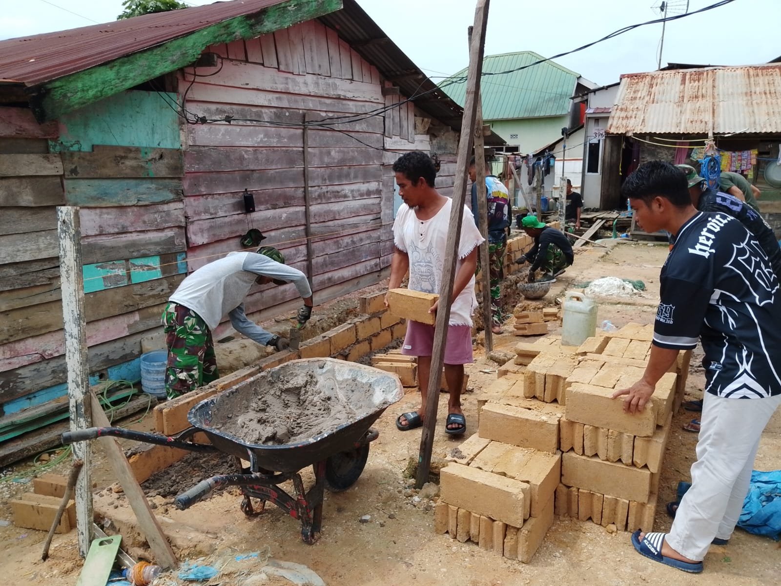 Kendari – Program Rehabilitasi Rumah Tidak Layak Huni (RTLH) TMMD ke-127 yang digelar oleh Kodim 1417/Kendari memberikan harapan baru bagi Ibu Momi, seorang warga di Kelurahan Petoaha, pada Sabtu (21/2). Dalam tahap terbaru ini, anggota Satgas bersama masyarakat setempat melakukan pemasangan dinding batako, yang merupakan bagian penting dari struktur rumah yang sedang dibangun. Proses pengerjaan dijalankan dengan cermat guna memastikan daya tahan bangunan maksimal.