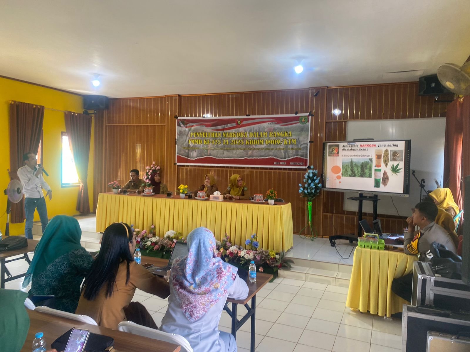 KUTAI TIMUR – Wujud nyata sinergitas TNI dan Polri kembali ditunjukkan dalam kegiatan non-fisik Program TNI Manunggal Membangun Desa (TMMD) ke-125 Kodim 0909/Kutai Timur. Kali ini, bentuk kepedulian terhadap generasi muda dan masyarakat sekitar diwujudkan melalui penyuluhan bahaya narkoba yang digelar di Gedung BPU Kecamatan Teluk Pandan.