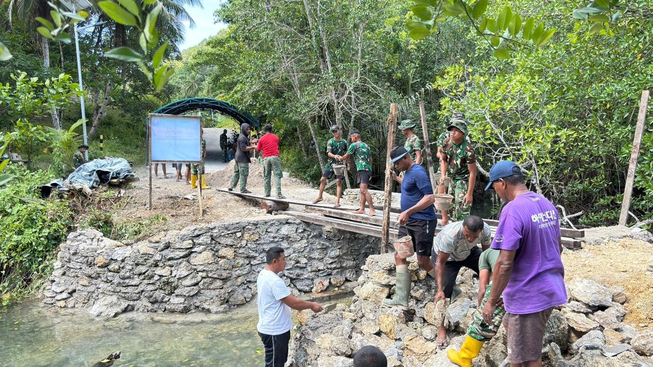 Kaimana – Satgas TMMD 127 Kodim 1804/Kaimana melanjutkan pembangunan jembatan di Kampung Marsi, Distrik Kaimana, Kabupaten Kaimana, pada Senin, 2 Maret 2026. Dalam tahap ini, fokus utama adalah pembuatan pondasi pinggiran jembatan, yang bertujuan untuk memperkuat struktur agar lebih kokoh dan tahan lama.