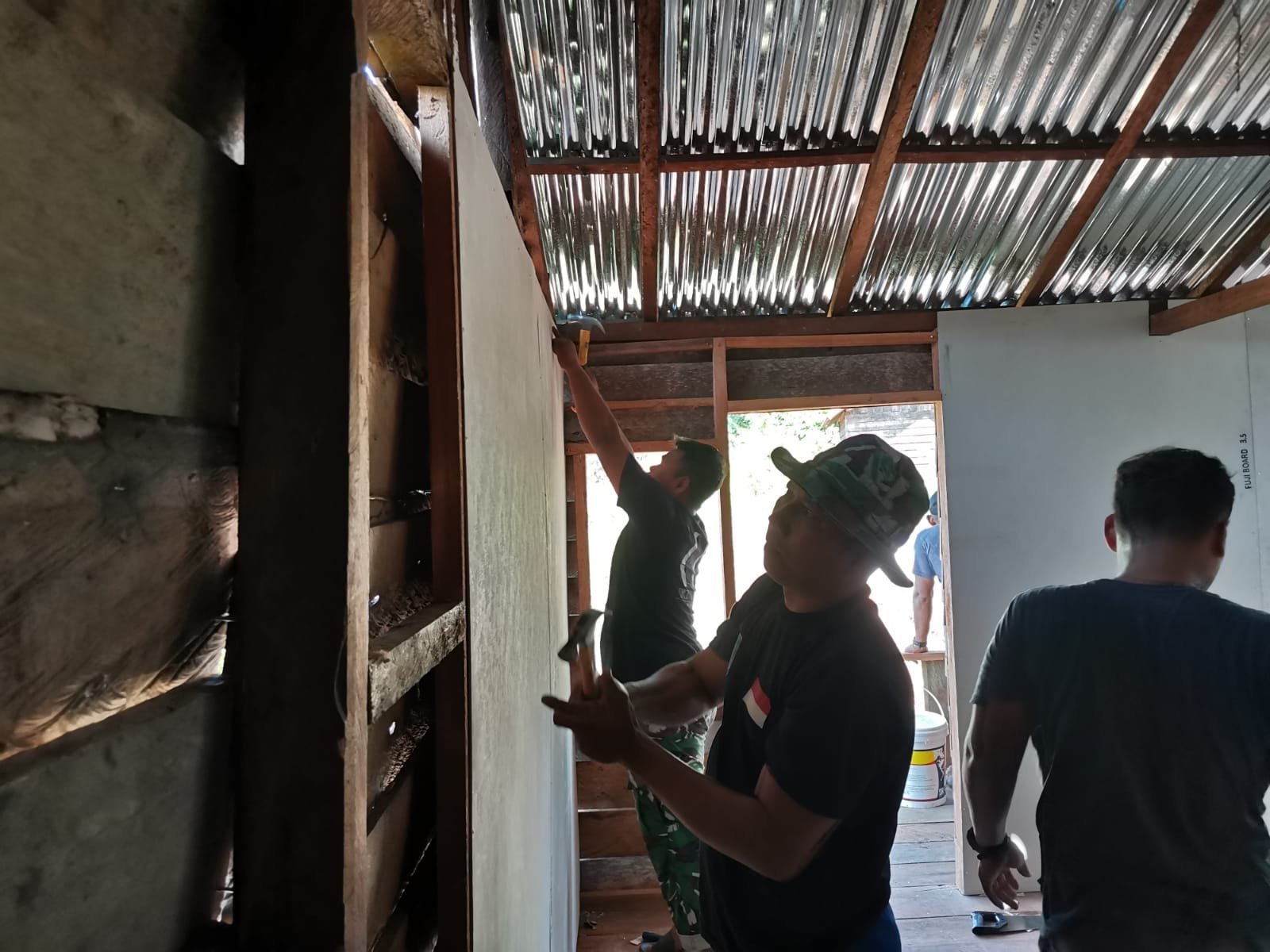 Sintang, 25 Juli 2025 — Pengerjaan rehabilitasi Rumah Tidak Layak Huni (RTLH) dalam program TNI Manunggal Membangun Desa (TMMD) ke-125 Kodim 1205/Sintang menunjukkan progres signifikan. Hingga hari ketiga pelaksanaan, progres rehab RTLH Sasaran 1 di Desa Sungai Pengga, Kecamatan Kayan Hilir, telah mencapai hampir 50 persen.
