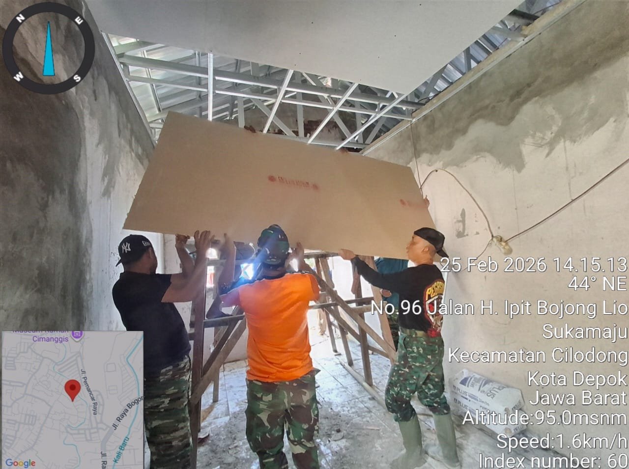 Depok – Program Rehabilitasi Rumah Tidak Layak Huni (RTLH) yang dilaksanakan dalam kegiatan TMMD Ke-127 Tahun Anggaran 2026 oleh Kodim 0508/Depok terus menunjukkan kemajuan yang signifikan. Pada hari ke-15, Rabu (25/2/2026), pembangunan RTLH milik Bapak Saelan Abidin di Kelurahan Sukamaju, Kecamatan Cilodong, Kota Depok telah mencapai 63 persen.