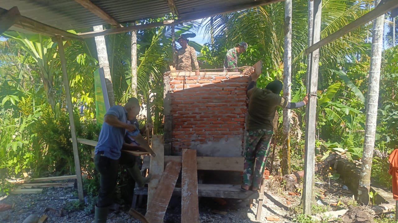 Progres Signifikan, Jajaran Korem 012/TU Lanjutkan Pemasangan Bata Bak Air Bersih