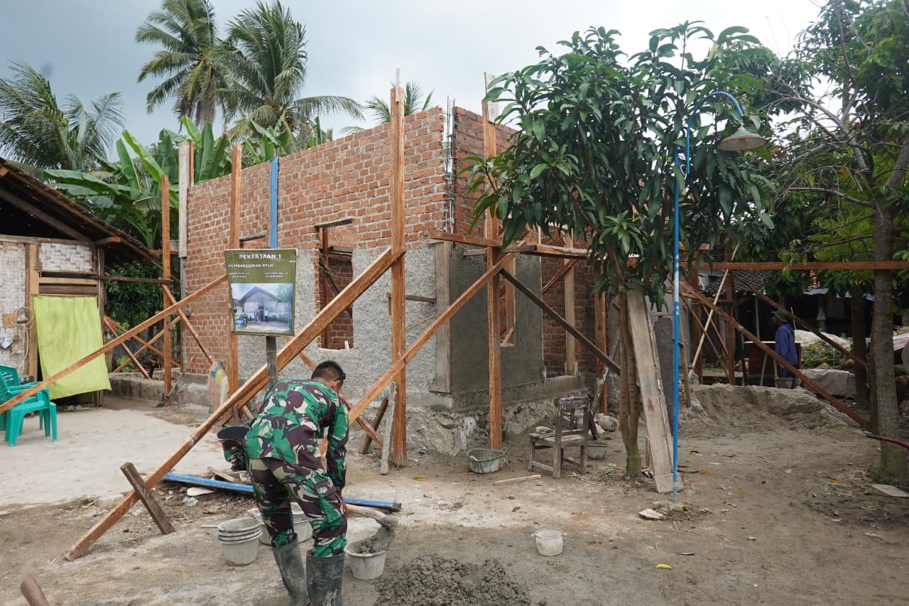 Pesawaran — Program Tentara Manunggal Masuk Desa (TMMD) ke-127 yang dilaksanakan oleh Kodim 0421/Lampung Selatan menunjukkan kemajuan yang signifikan. Salah satu proyek Rumah Tidak Layak Huni (RTLH) di Desa Tanjung Rejo, milik Bapak Khoirul Anwar, kini telah mencapai tahap pemasangan batu bata serta plester pada bagian depan rumahnya.