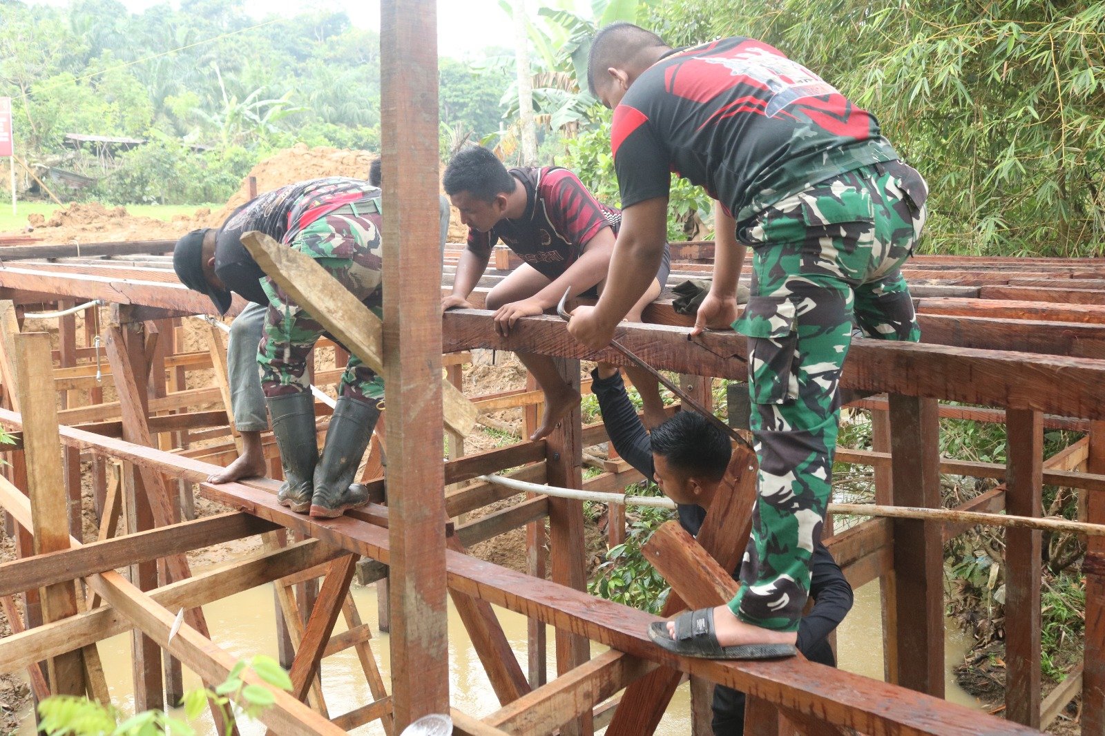 Pengerjaan yang dilakukan secara gotong royong ini tak hanya membangun fisik jembatan, tetapi juga menguatkan ikatan sosial antarwarga dan TNI. Setiap tetes keringat yang jatuh di lokasi proyek menjadi bagian dari cerita perjuangan menuju kehidupan yang lebih mudah dan sejahtera bagi Desa Suka Rahmat.(0909).