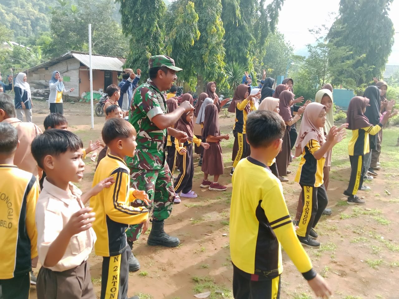 Kabupaten Bima – Dalam upaya memulihkan semangat dan kebahagiaan siswa pasca peristiwa penyegelan sekolah, Babinsa Desa Ntonggu dari Koramil Kodim 1608/Bima menggelar kegiatan senam ceria di SDN 02 Ntonggu pada Sabtu, 17 Januari 2026. Acara ini dihadiri oleh ratusan siswa yang menunjukkan antusiasme tinggi selama pelaksanaan.