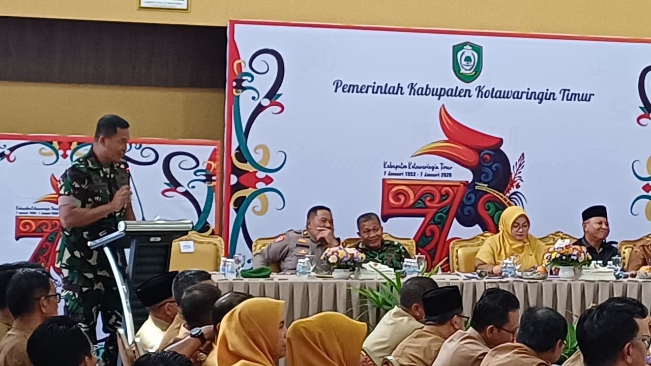 Kotawaringin Timur – Rapat Evaluasi Akhir Tahun 2025 yang diselenggarakan di Aula Rumah Jabatan Bupati, Jalan A. Yani No. 17, Kecamatan MB Ketapang, Kabupaten Kotawaringin Timur, dihadiri oleh berbagai pemangku kepentingan. Kegiatan tersebut berlangsung pada Selasa (30/12/2025) dan dipimpin oleh Wakil Bupati Kotim. Dandim 1015/Sampit, Letkol Inf Dwi Candra Setyawan, diwakili oleh Kapten Inf Sahidin, Pasi Ops Kodim, yang turut serta dalam forum tersebut.