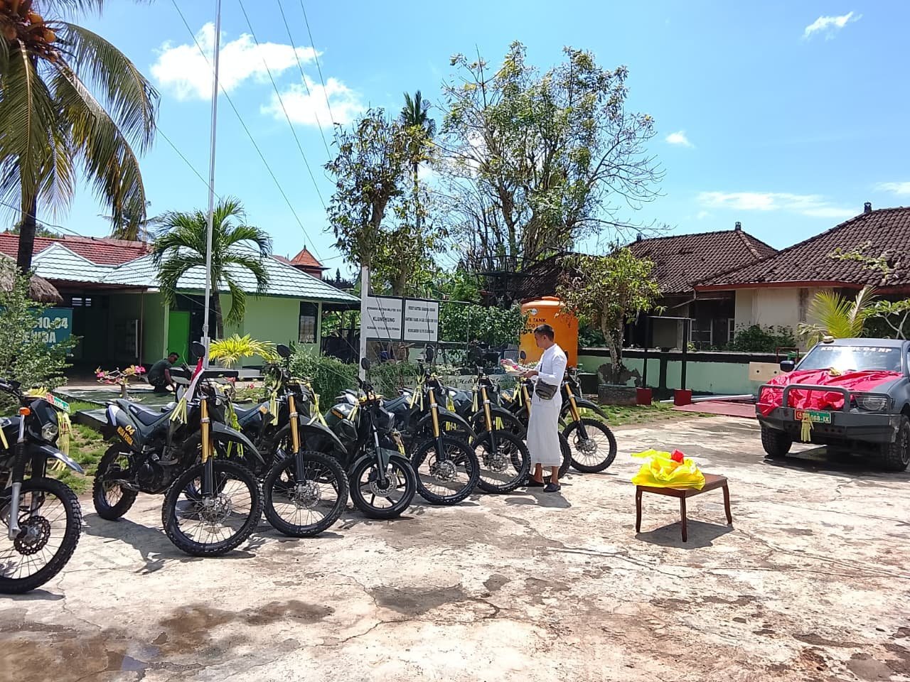 Rayakan Tumpek Landep, Puluhan Kendaraan Operasional Koramil Nusa Penida Diupacarai