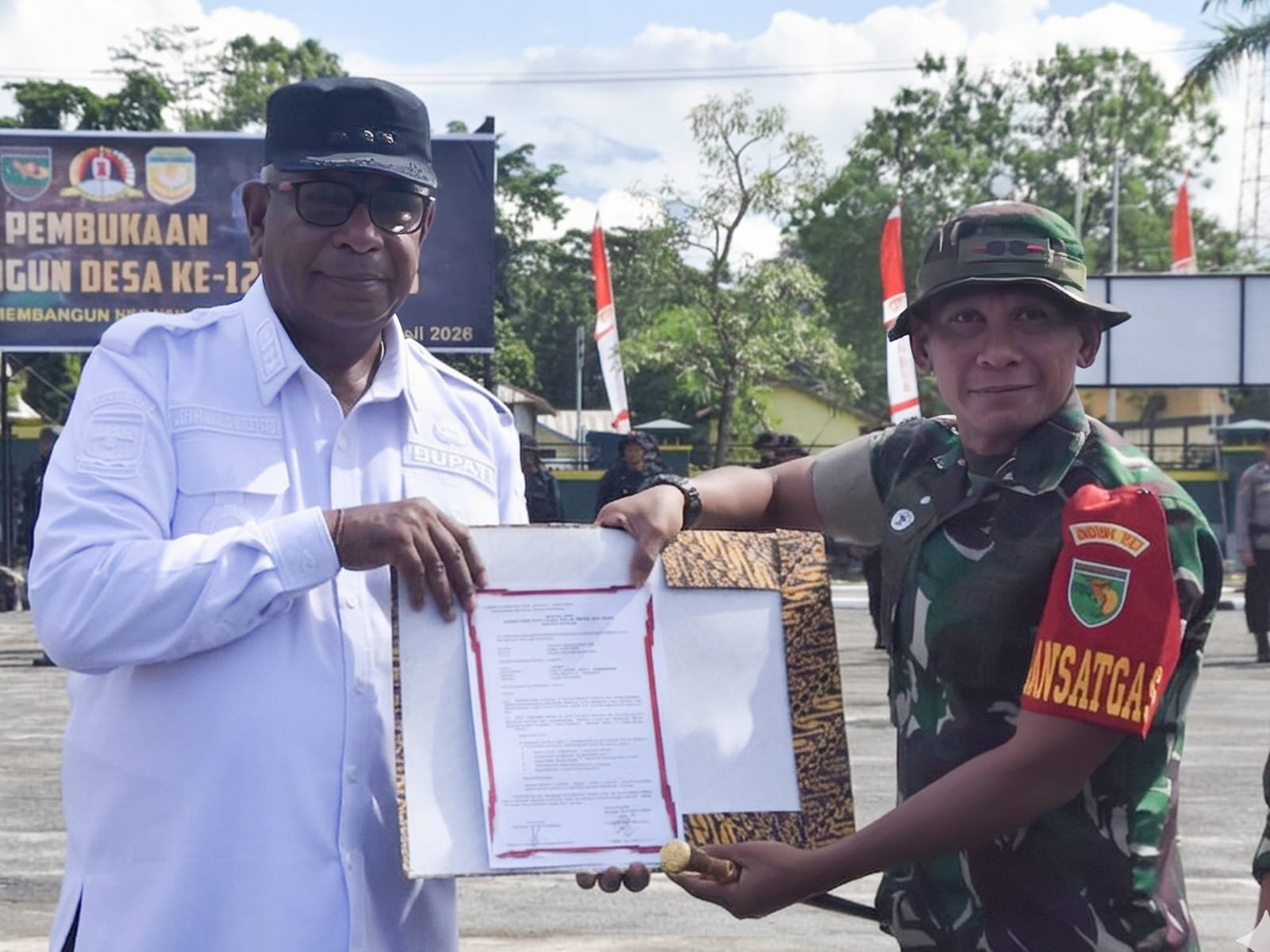 Timika – Pada Rabu, 22 April 2026, penandatanganan naskah serah terima kegiatan menandai secara resmi dimulainya pelaksanaan TNI Manunggal Membangun Desa (TMMD) Ke-128 di Kabupaten Mimika. Kegiatan ini dilakukan oleh Bupati Mimika bersamaan dengan Dansatgas TMMD, yang dihadiri oleh berbagai pejabat TNI, Polri, dan pemerintah setempat.