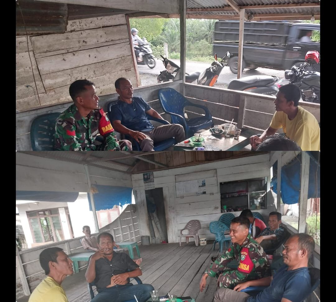 ACEH BARAT – Babinsa Posramil 05/Pante Ceureumen Kodim 0105/Aceh Barat, Kopka Doni Firdaus, terus aktif menjalin kedekatan dengan masyarakat di wilayah binaannya. Salah satu upaya yang dilakukan yakni dengan melaksanakan komunikasi sosial (Komsos) bersama warga. Kegiatan tersebut dilaksanakan secara santai sambil menikmati secangkir kopi di salah satu warung kopi di wilayah Pante Ceureumen. Komsos dilakukan di Desa Krung Beukah, Kecamatan Pante Ceureumen, Kabupaten Aceh Barat, Sabtu (03/01/2026).