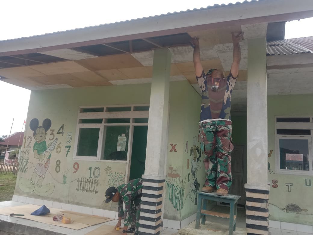 Dan SSK TMMD, Kapten Inf Selfinus Sembiring, mengungkapkan bahwa rehabilitasi TK ini merupakan tambahan sasaran fisik dalam program TMMD tahun ini. “Dalam pelaksanaan rehabilitasi, anggota Satgas melakukan pengecatan dinding bagian dalam dan luar, serta perbaikan langit-langit TK,” jelasnya.