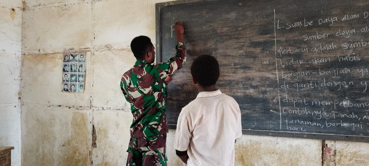 Satgas TMMD 126 Kodim 1711/BVD Tanamkan Wawasan Kebangsaan kepada Siswa SD YPPK St. Isidorus Waropko