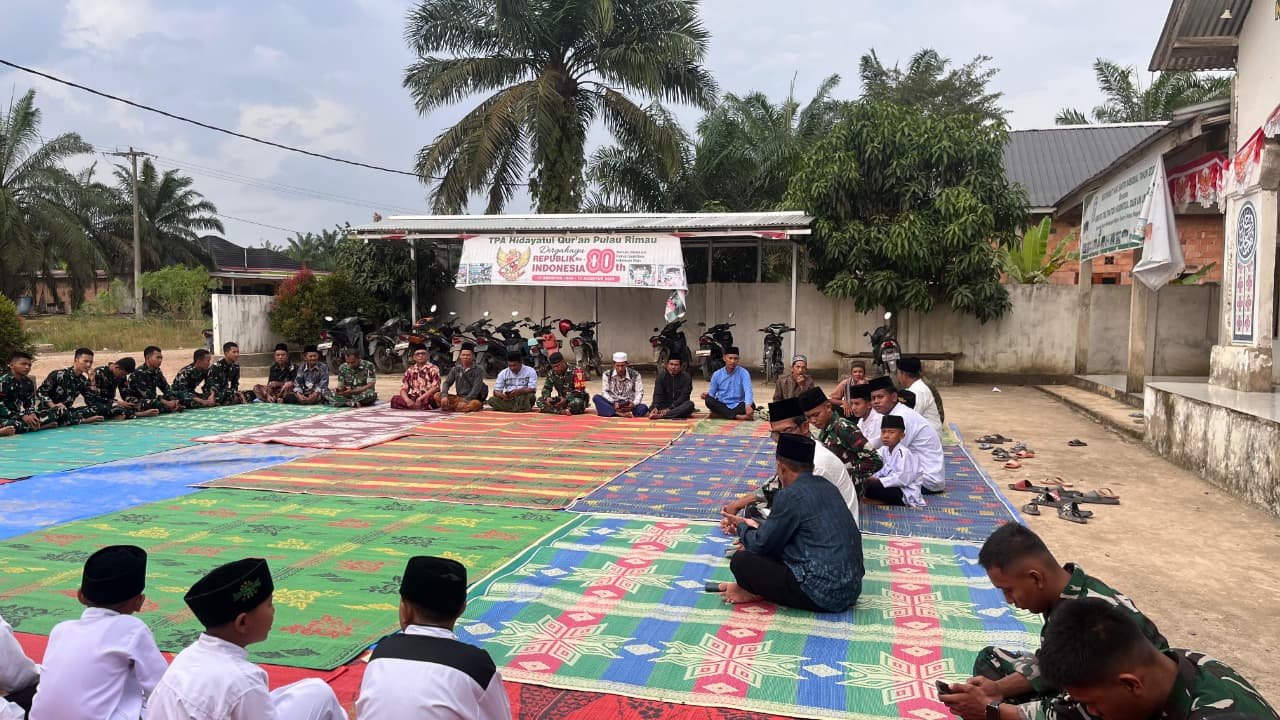 Banyuasin, 6 Maret 2026 – Dalam rangka menyambut bulan suci Ramadan, anggota Satgas TMMD ke-127 Kodim 0430/Banyuasin melaksanakan kegiatan buka puasa bersama anak-anak dari TK-TPA Hidayatul Qur’an di Desa Wonosari, Kecamatan Pulau Rimau. Kegiatan ini bertujuan untuk memperkuat ikatan antara TNI dan masyarakat setempat.