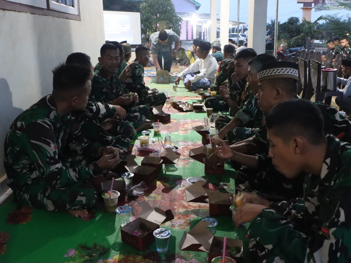 Satgas TMMD 127 Kodim 0430/Banyuasin Gelar Buka Puasa Bersama di Rumah Kades Wonosari