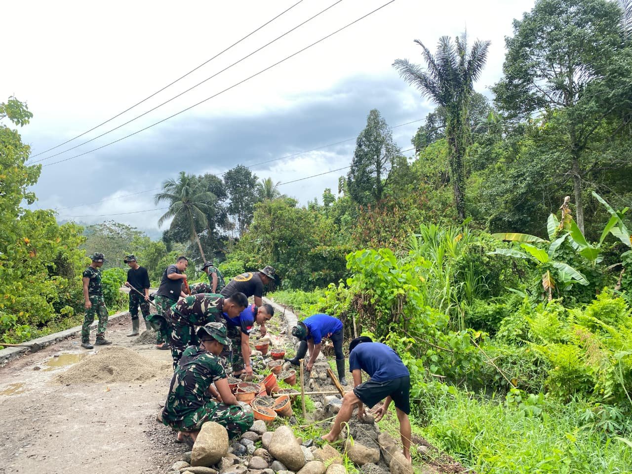 Satgas TMMD 127 Kodim 1305/Buol Tolitoli Laksanakan Pengerasan Jalan dan Talud di Dusun Ogomolobu