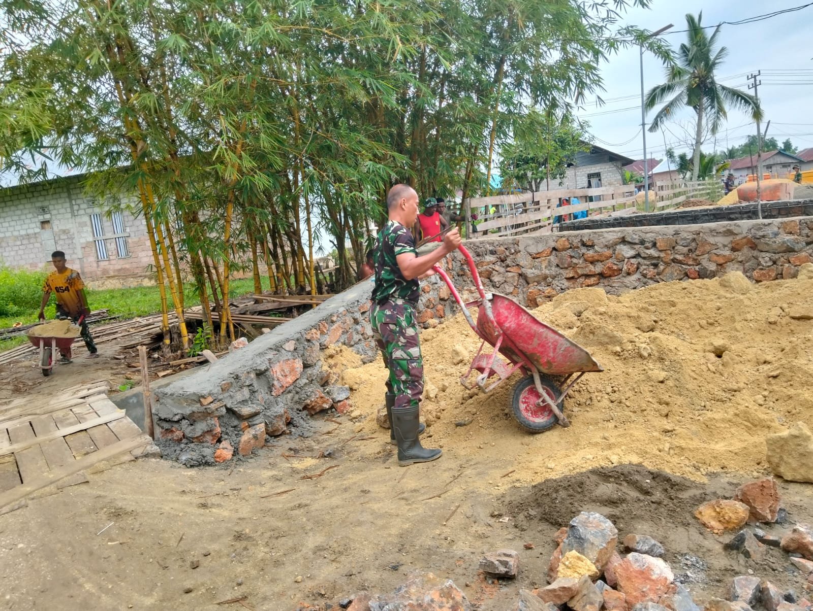 Kendari – Dalam upaya mempercepat pembangunan infrastruktur, Satgas TMMD ke-127 Kodim 1417/Kendari telah menuntaskan penimbunan oprit jembatan di salah satu titik sasaran di Kota Kendari pada Sabtu, 21 Februari. Penimbunan ini dilakukan di ujung jembatan yang merupakan tahap penting untuk memperkuat akses kendaraan dan pejalan kaki. Para personel Satgas bekerja sama meratakan material timbunan agar permukaan menjadi lebih padat dan stabil. Pekerjaan ini dianggap krusial sebelum jembatan dapat berfungsi secara optimal bagi masyarakat. Keakuratan dalam pemadatan tanah pun sangat diperhatikan demi memastikan keamanan serta daya tahan konstruksi dalam jangka panjang. Satgas TMMD juga melibatkan peran serta warga setempat dalam pengerjaan, menjaga semangat gotong royong sebagai nilai utama dalam semua tahap pembangunan. Dengan rampungnya penimbunan ini, diharapkan akses transportasi warga dapat meningkat dan mendukung kegiatan sosial serta ekonomi masyarakat di Kota Kendari.