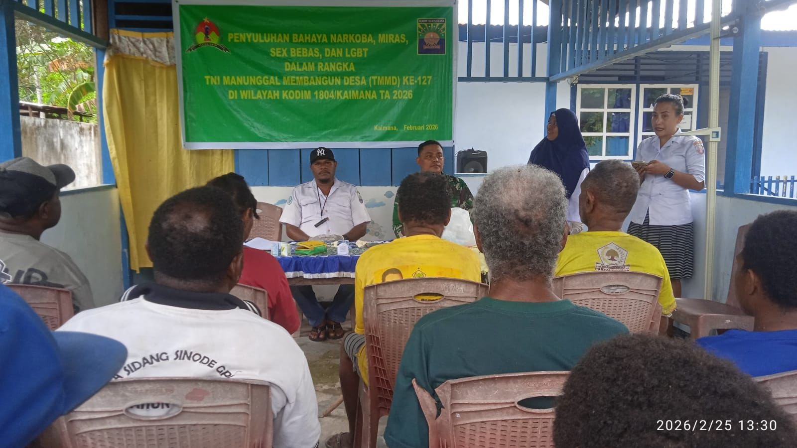 Kaimana – Dalam upaya membangun desa, pendekatan yang dilakukan tidak hanya sebatas pembangunan infrastruktur, tetapi juga melibatkan pembinaan mental dan sosial masyarakat. Hal ini ditunjukkan oleh Satgas TMMD ke-127 Kodim 1804/Kaimana melalui pelaksanaan penyuluhan di Kampung Sisir, Kabupaten Kaimana pada 26 Februari 2026.