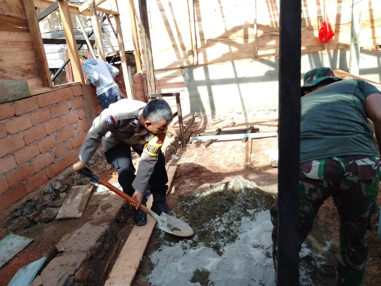 Para prajurit bekerja dengan teliti untuk meratakan adukan semen pada dinding bata, bertujuan agar permukaan dinding menjadi lebih kuat dan tahan lama. Hasil kerja mereka mulai menunjukkan perbedaan yang signifikan; bangunan yang sebelumnya tampak rapuh kini mulai terlihat kokoh dan nyaman, memberi harapan baru bagi keluarga penerima bantuan.
