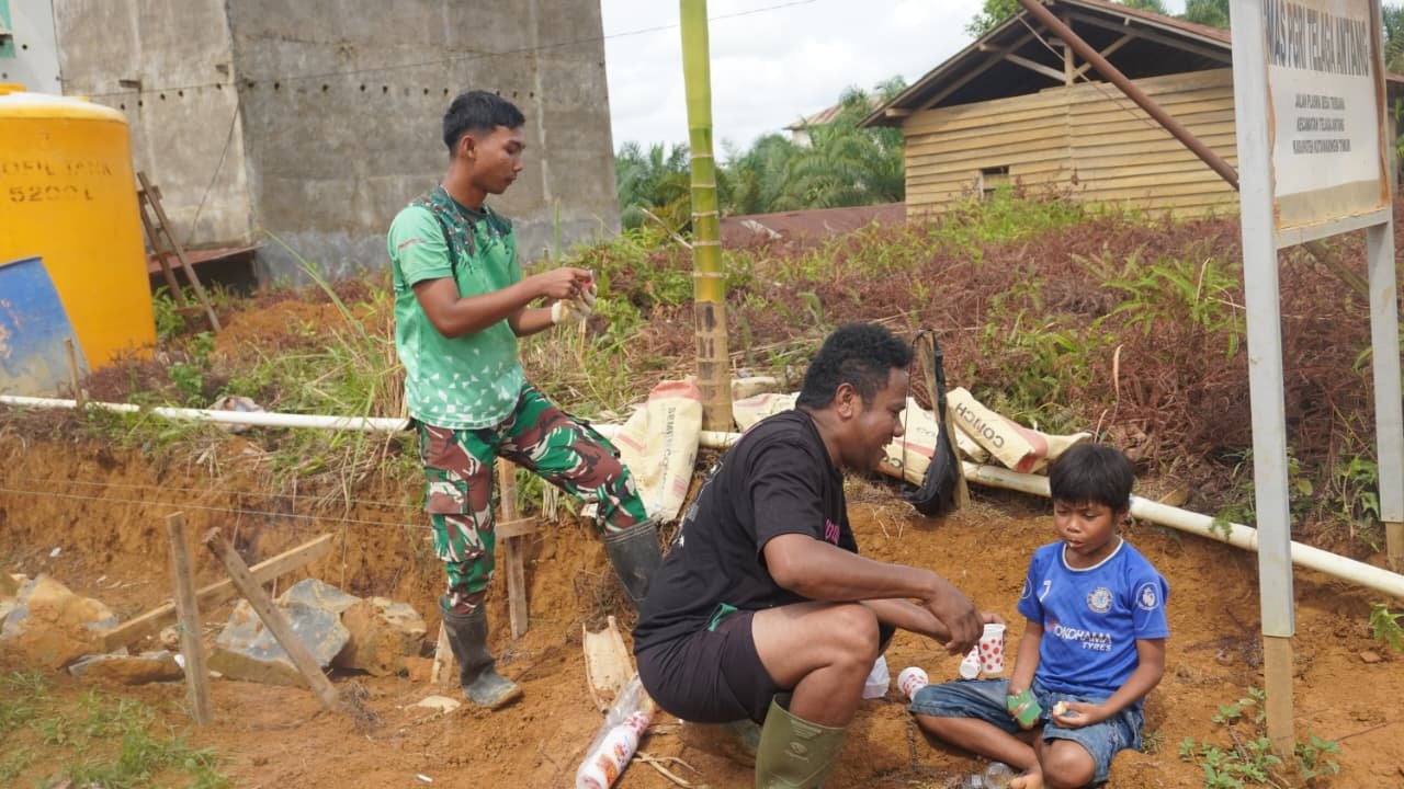 Telaga Antang – Program TMMD Reguler ke-127 tidak hanya fokus pada pembangunan infrastruktur, tetapi juga memberikan dampak sosial yang dirasakan oleh masyarakat, terutama anak-anak di daerah target, pada Rabu (18/02/2026). Sambil menjalankan tugas pembangunan fisik, anggota Satgas TMMD meluangkan waktu untuk berinteraksi dengan anak-anak desa melalui berbagai aktivitas sederhana, seperti bercengkerama, bermain, dan berbagi camilan. Kehadiran prajurit TNI di tengah mereka menciptakan suasana hangat dan keceriaan di lingkungan desa.