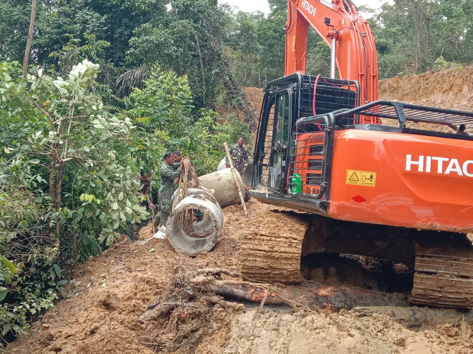 Pengerjaan drainase melalui pemasangan gorong-gorong menjadi salah satu fokus utama Satgas TMMD di lokasi. Para personel terlihat bekerja dengan penuh tanggung jawab dan disiplin.