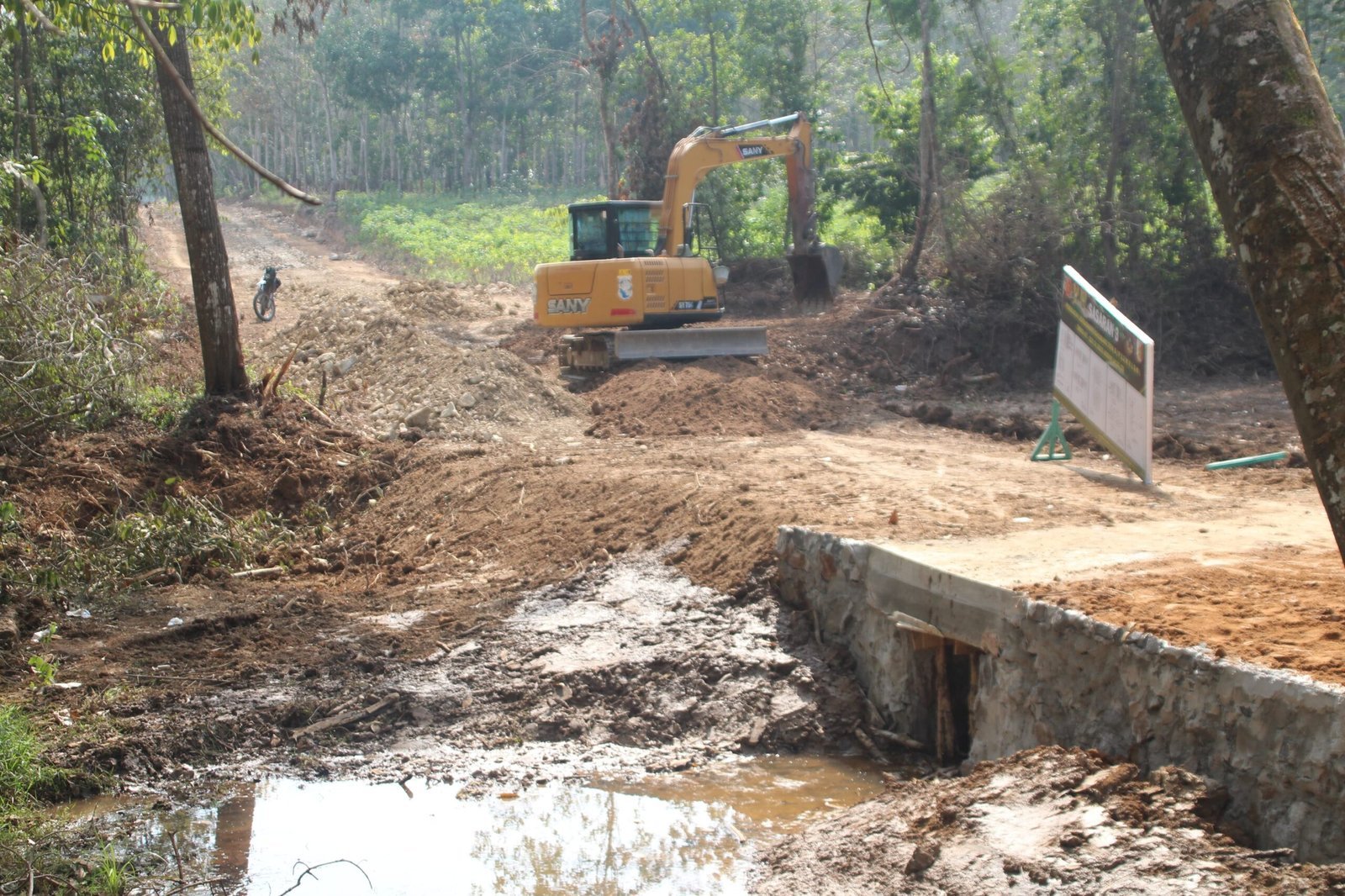 Untuk mempercepat proses pengerjaan, Kodim 0426/Tulang Bawang mengerahkan alat berat jenis excavator. Kehadiran alat berat ini membantu memindahkan material dalam jumlah besar dengan lebih cepat dan efisien, sehingga progres pembangunan dapat berjalan sesuai target waktu yang telah ditentukan.