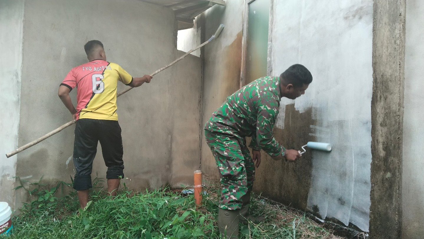 Kerja sama antara Satgas TMMD dan masyarakat terlihat kompak sejak pagi. Dengan semangat gotong royong, mereka bahu-membahu mengecat dinding, memperbaiki bagian yang rusak, serta membersihkan lingkungan sekitar masjid.