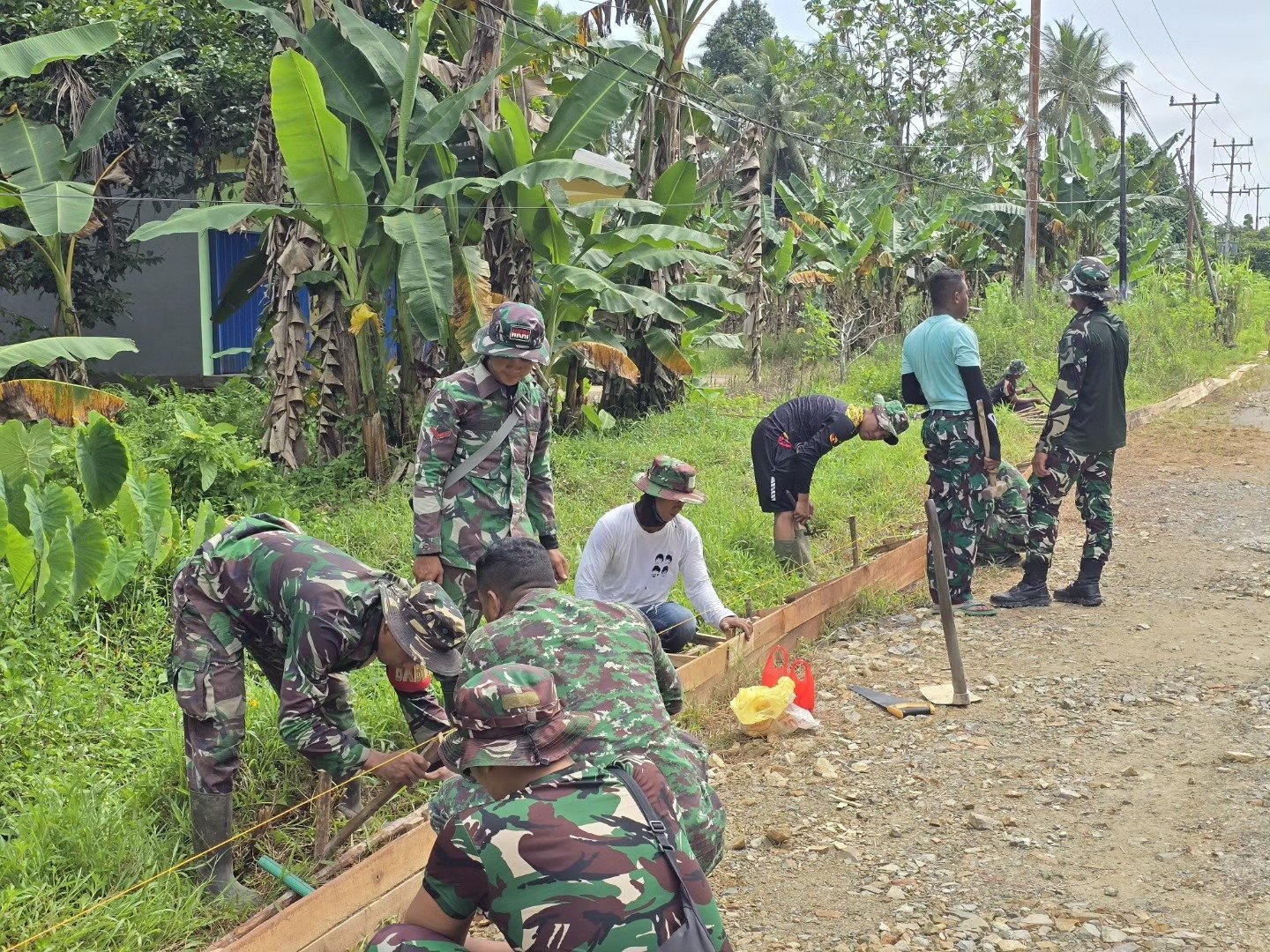 Suasana penuh semangat dan kebersamaan terlihat jelas di lokasi. Anggota Satgas TMMD bersama warga bergotong royong menyiapkan kayu mal dan rangka cor untuk memastikan hasil pekerjaan rapi, kuat, dan sesuai dengan perencanaan teknis. Kegiatan ini menjadi wujud nyata sinergi antara TNI dan masyarakat dalam membangun desa dari tingkat paling bawah.