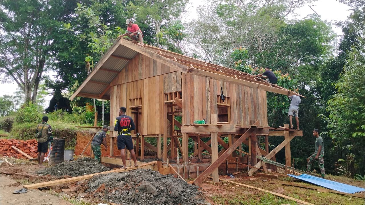 Pada Selasa (28/10/2025), personel Satgas bersama warga tampak bergotong royong di lapangan, menyelesaikan tahapan pekerjaan meski cuaca mendung dan kondisi tanah berlumpur. Semangat kebersamaan menjadi kunci utama agar rumah segera rampung dan dapat ditempati warga penerima manfaat.