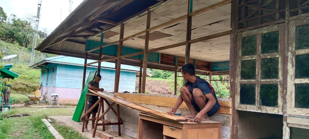 Pada Senin (27/10/2025), terlihat personel TNI bersama masyarakat bergotong royong memperbaiki bagian bangunan yang rusak agar lebih layak digunakan. Suasana kerja sama dan kebersamaan begitu terasa di lokasi kegiatan.
