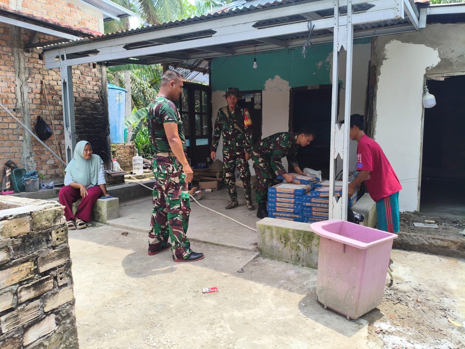 Banyuasin, 5 Maret 2026 – Pelaksanaan program TNI Manunggal Membangun Desa (TMMD) ke-127 yang dilaksanakan oleh Kodim 0430/Banyuasin di Desa Wonosari, Kecamatan Pulau Rimau, Kabupaten Banyuasin menunjukkan semangat gotong royong yang tinggi. Anggota Satgas TMMD berkolaborasi dengan masyarakat setempat untuk mengangkat material keramik yang akan digunakan dalam pembangunan Rumah Tidak Layak Huni (RTLH) milik Bapak Paiman.