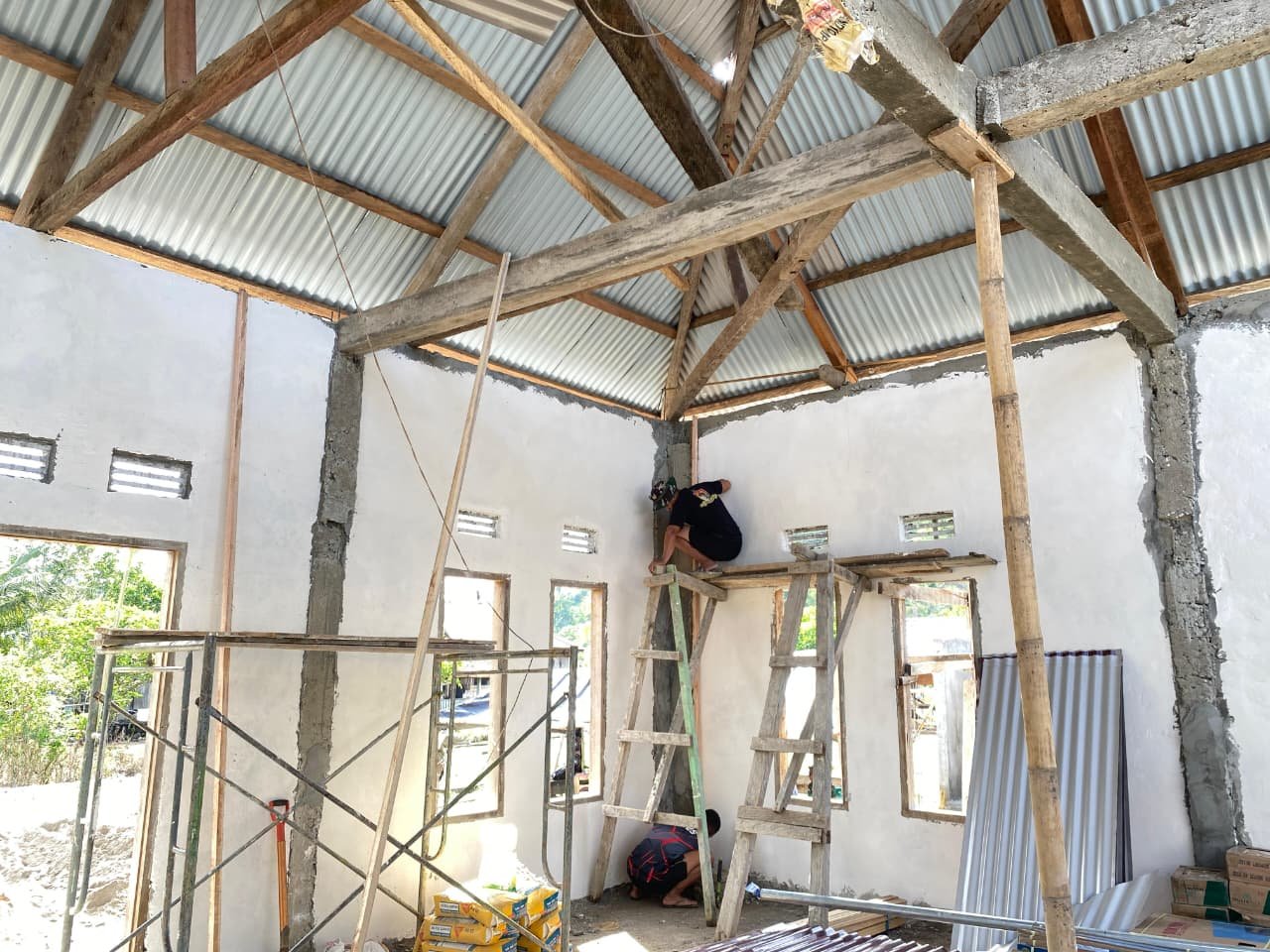 Pada hari ini, fokus kegiatan adalah pada penyempurnaan struktur bangunan serta penataan bagian konstruksi agar masjid dapat berdiri dengan kokoh dan siap digunakan oleh warga setempat.