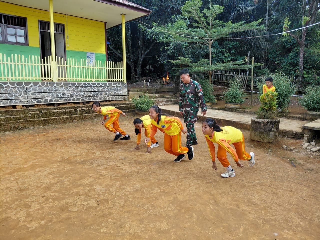 Satgas TMMD Kodim 1017/Lamandau Ciptakan Suasana Ceria dengan Bermain Bersama Anak SD Negeri Batu Kotam