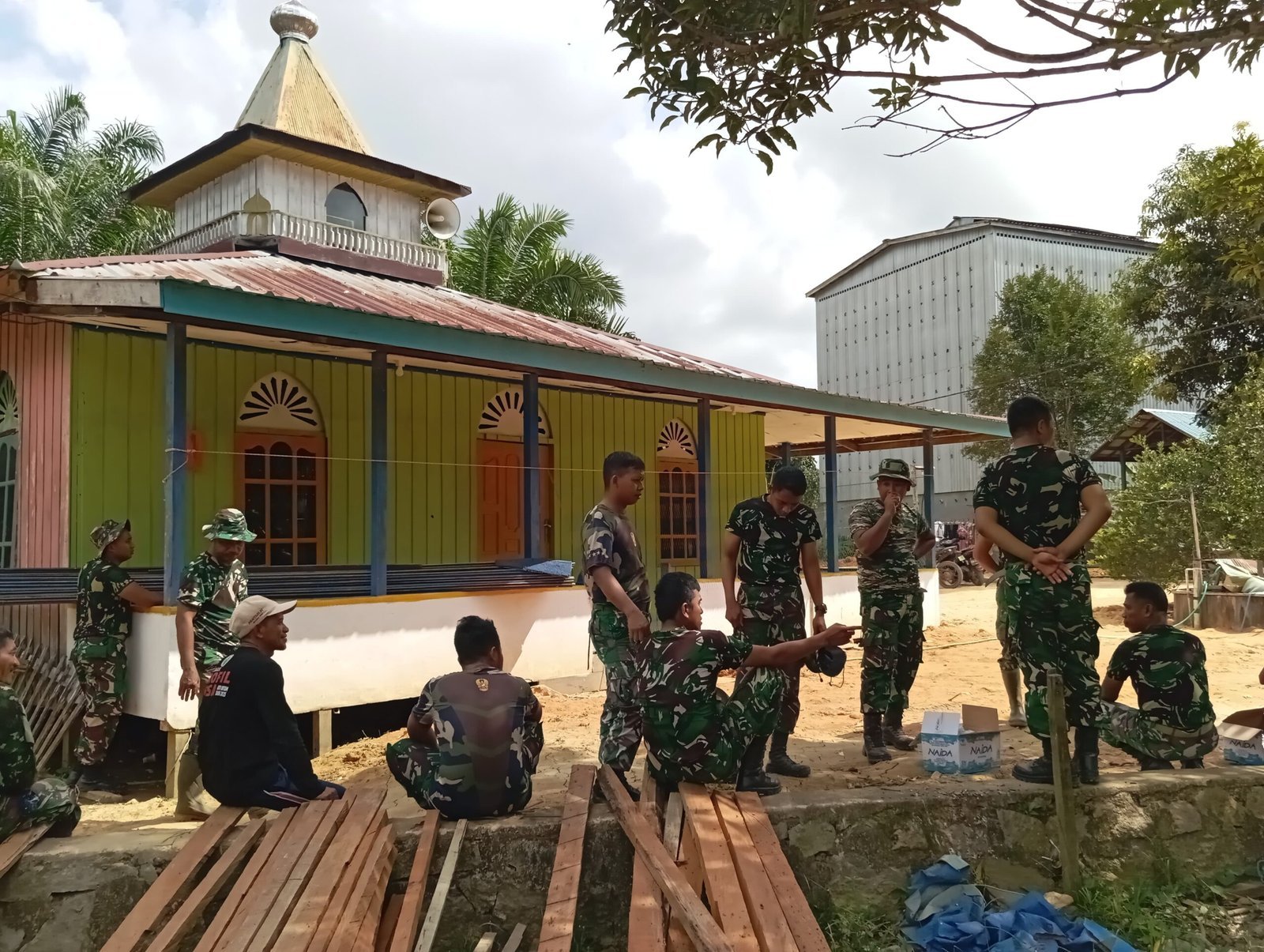 Lamandau – Di tengah proses perehaban satu unit rumah ibadah yang sudah mencapai 85% penyelesaian, Satgas TMMD Reguler ke-125 Kodim 1017/Lamandau terus menjalin kebersamaan erat dengan masyarakat Desa Batu Kotam, Kecamatan Bulik, Kabupaten Lamandau, Minggu (10/08/25).