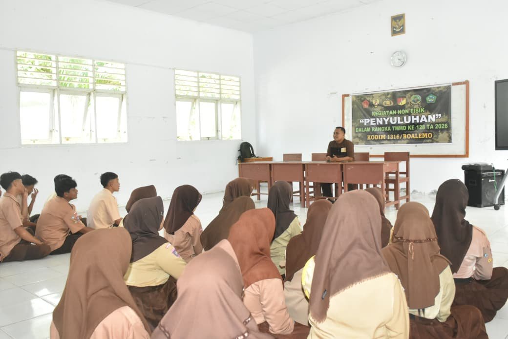 BOALEMO – Suasana pembelajaran di SMKN 1 Botumoito, Desa Dulangeya, Kecamatan Botumoito, tampak berbeda pada Jumat (24/04/2026). Kehadiran personel Satgas TNI Manunggal Membangun Desa (TMMD) ke-128 Kodim 1316/Boalemo menghadirkan nuansa baru dalam kegiatan pendidikan melalui penyuluhan bersama pihak sekolah guna membangun karakter generasi muda di Kabupaten Boalemo.