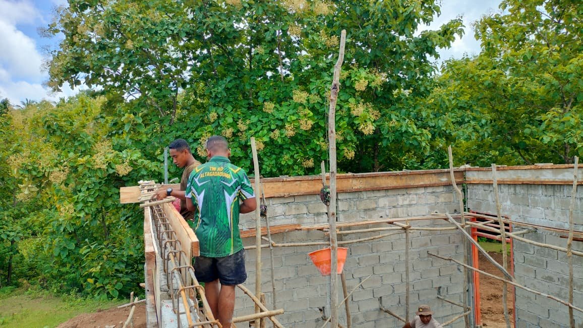 Satgas TMMD Kodim 1618/TTU Bersama Warga Pemasangan Slof Atas RKB SMAN Bikomi Nilulat