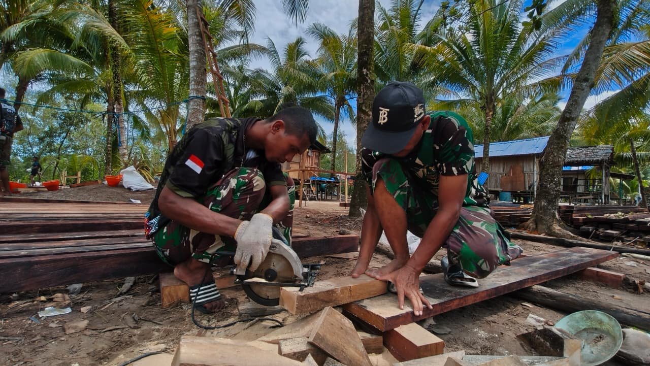 Di lokasi proyek, para personel Satgas TMMD aktif bekerja berdampingan dengan warga dalam menyiapkan beragam kayu yang akan digunakan sebagai elemen dasar bangunan. Dengan penuh perhatian, kayu-kayu tersebut dipilih dan disusun agar kualitasnya sesuai dengan spesifikasi konstruksi.